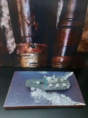 35X19X9 CM. DEKORATİF ÇALIŞMA;AHŞAP ÜZERİNDE EPOKSİ ÇALIŞMASI İLE BİRLİKTE OYUNCAK GEMİ MODELİ,DALGA EFEKTLERİ.