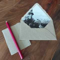 CEPHEDE ASKERLER ASTARLI 13X9 CM DOKULU TOPRAK RENGİ ZARF,.EL YAPIMI ÜRÜNLER.